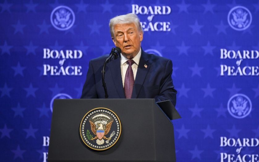 当地时间2026年1月22日,瑞士达沃斯,美国总统特朗普同10余个国家和地区代表签署文件,启动所谓“和平委员会”。图/IC