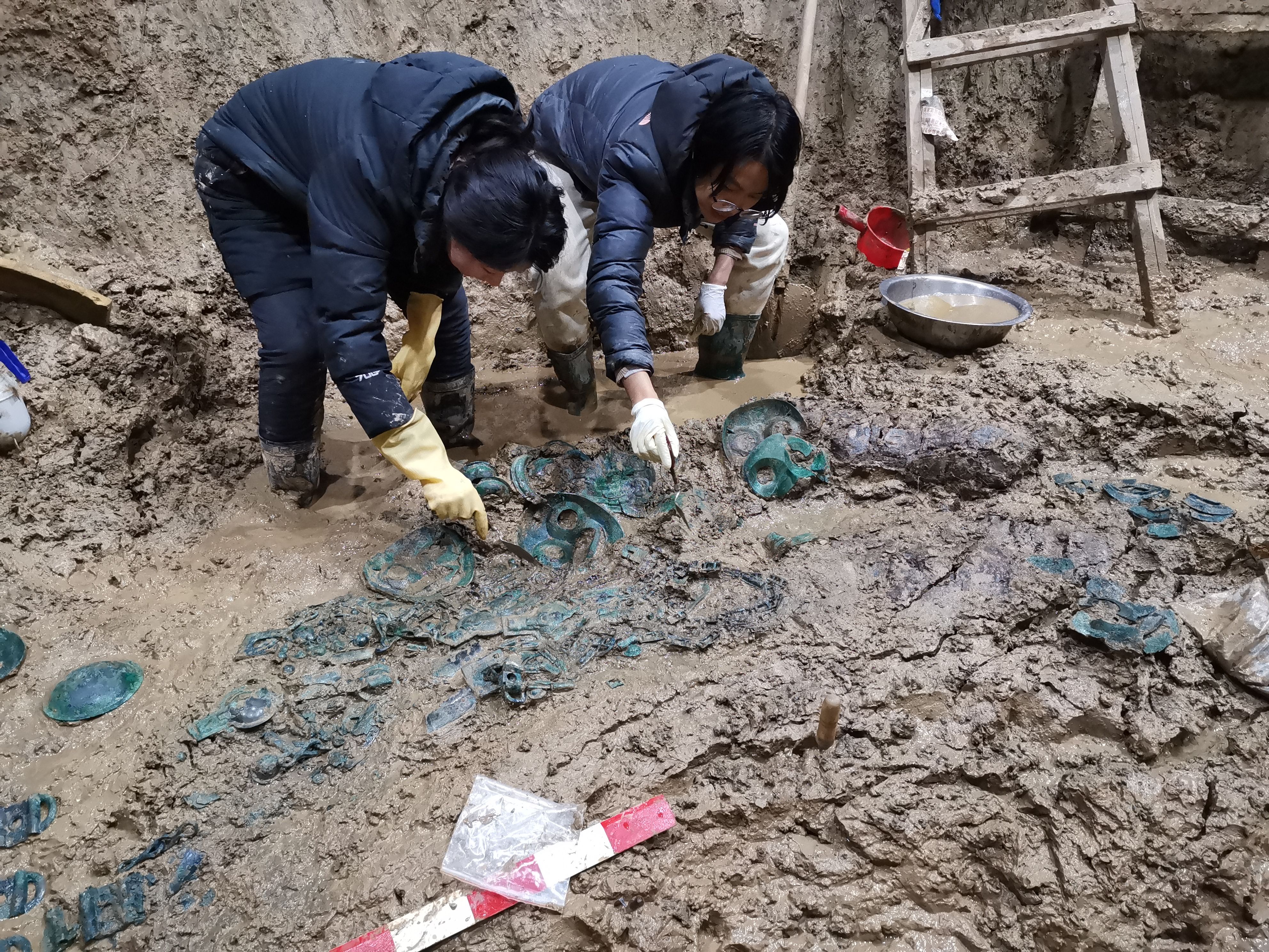 琉璃河遗址考古发掘现场负责人王晶记得,这些青铜器出土于冬天。“1902号墓葬是偏中小型的贵族墓,面积仅有7平方米,能够在这么小的区域内出土青铜器,已经算是比较惊喜了。”
