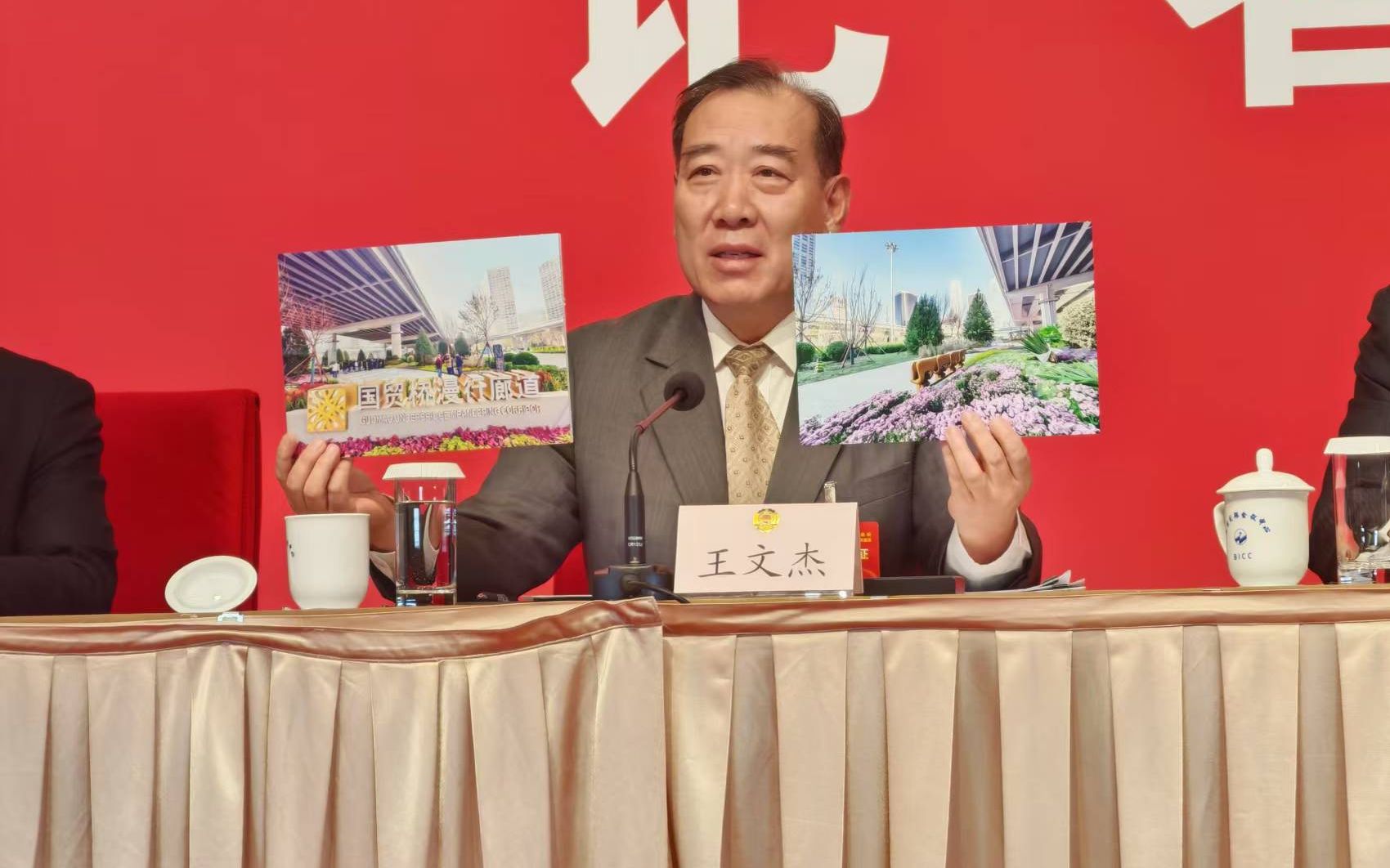 1月25日下午,北京市政协十四届四次会议举行记者会,5位委员围绕“聚焦‘十五五’规划实施贡献政协智慧和力量”回答记者提问。北京市政协常委、北京市政协提案委员会主任王文杰拿出两张国贸桥花园廊道图,介绍了这样一个故事。