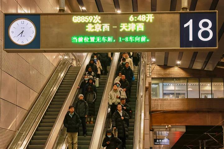 记者了解到,今天早间,在北京西站,已有百余名旅客乘坐G8859次列车出行,其中绝大多数都是目的地为白洋淀站、前往雄安新区的跨省通勤族。