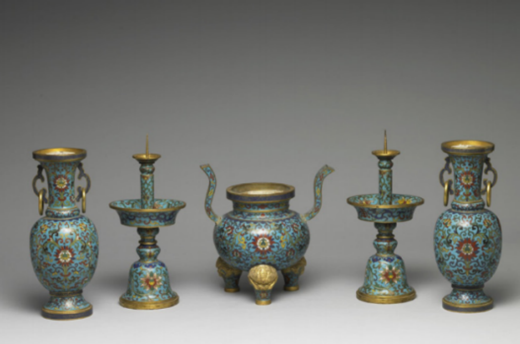 铜胎掐丝珐琅五供,清代,台北故宫博物院藏。《香遇中国:中华香史五千年》插图