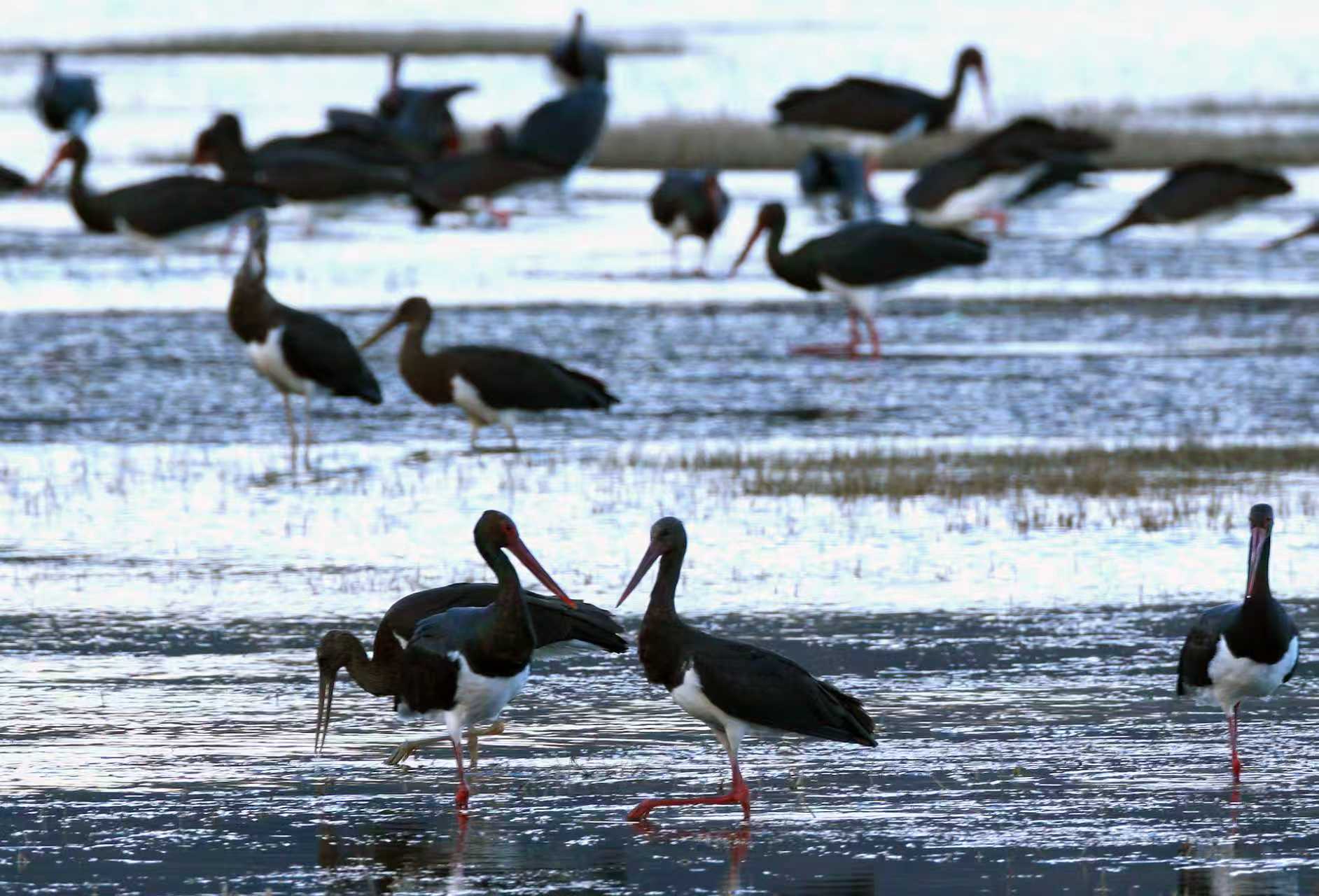 房山拒马河黑鹳扎堆上演“相亲大会”