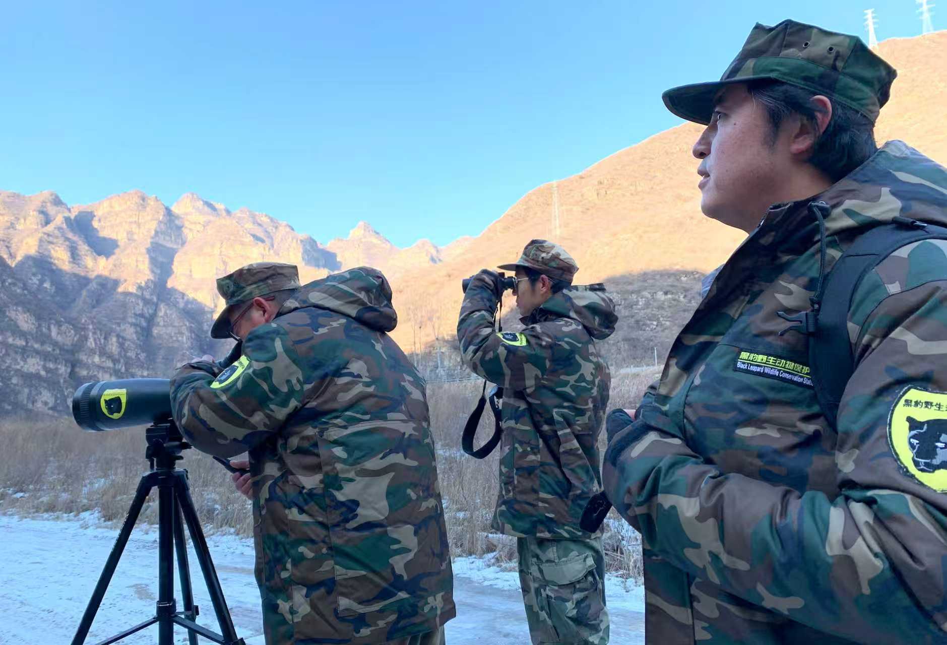 黑豹野生动物保护站队员在监测黑鹳。据保护站站长李理介绍,自2000年起保护站就在拒马河流域监测黑鹳。当时,拒马河边只有三五只黑鹳,如今已经增长到高峰时的70多只。黑鹳还从房山拒马河扩散到大石河流域,甚至还有去门头沟、大兴、海淀、丰台、怀柔、密云、延庆等各区“安家”的,北京市的黑鹳已经达到上百只。
