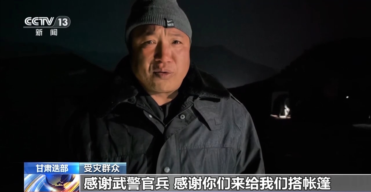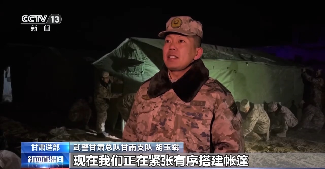 武警甘肃总队甘南支队 胡玉斌:现在我们正在紧张有序搭建帐篷,确保高效快速完成,让受灾群众能够温暖过夜。