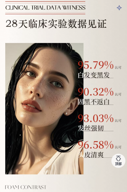 单看产品宣传,可谓“一语中的”,直指白发人群的痛点。什么“白发根养黑、自然变黑、告别染发剂”,什么“使用一次后黑发增加90%”,撇开疗效不谈,光这套话术就能带给人满满的“情绪价值”。