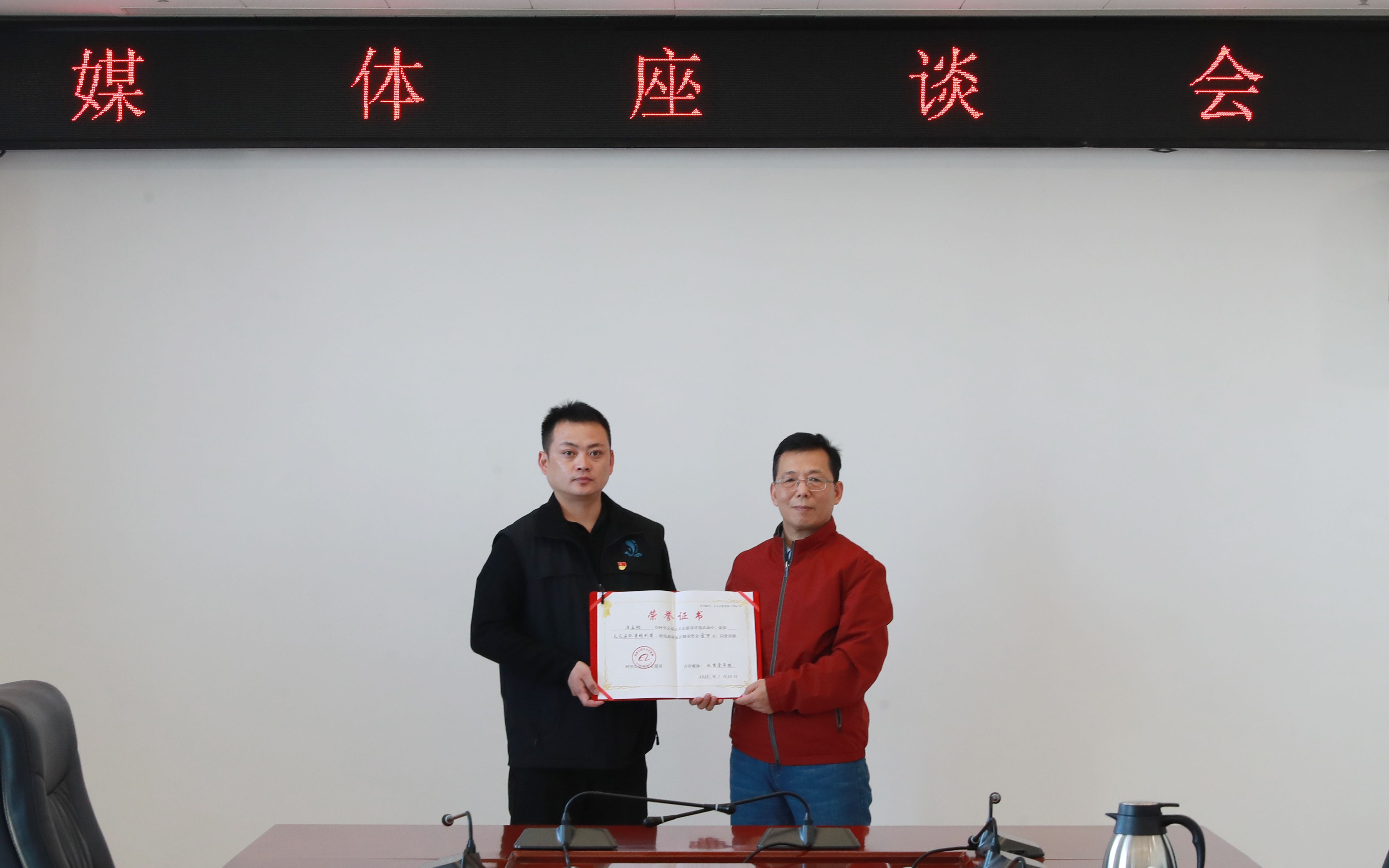 唐孟雄(左)收到荣誉证书。首都文明办供图
