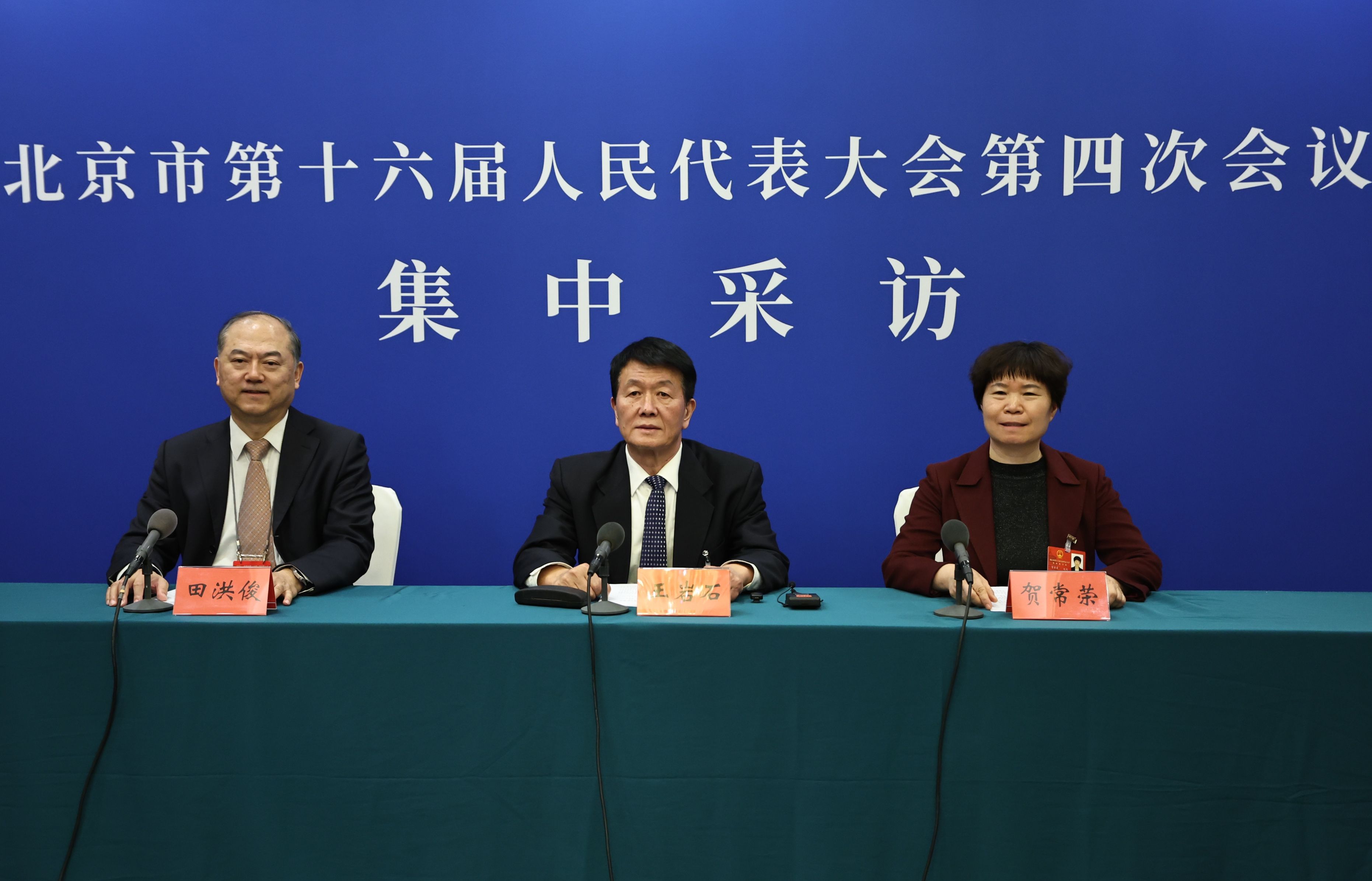 延庆代表团新闻发言人,延庆区人大常委会党组副书记、副主任贺常荣。新京报记者 王飞 摄