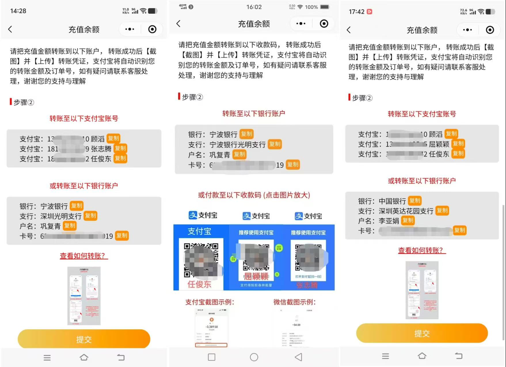 此外,多位杰我睿消费者还透露,充值时是向杰我睿员工的私人支付宝账号进行打款。