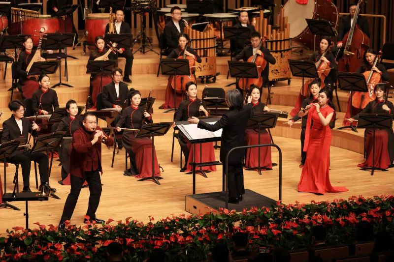 双唢呐与乐队共同演出《百鸟朝凤》。