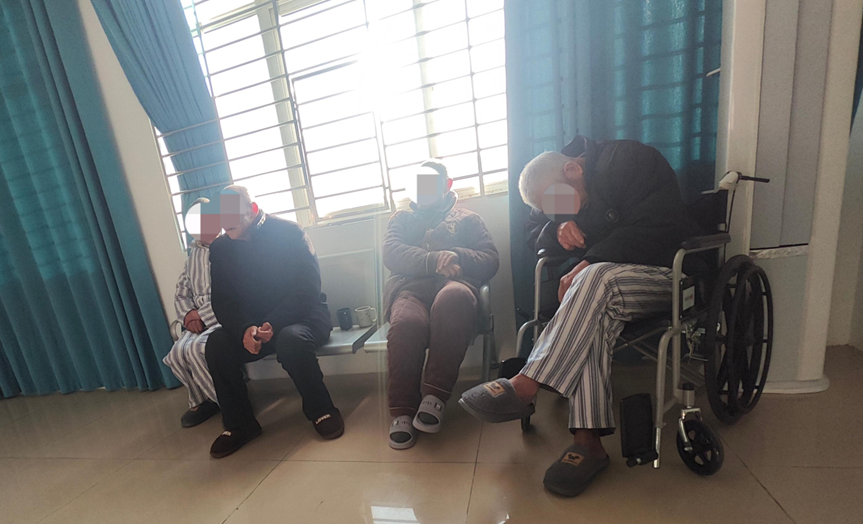 ▲湖北襄阳宏安精神病医院住了不少老年人,他们中有的整天要坐在轮椅上。新京报记者 韩福涛 摄