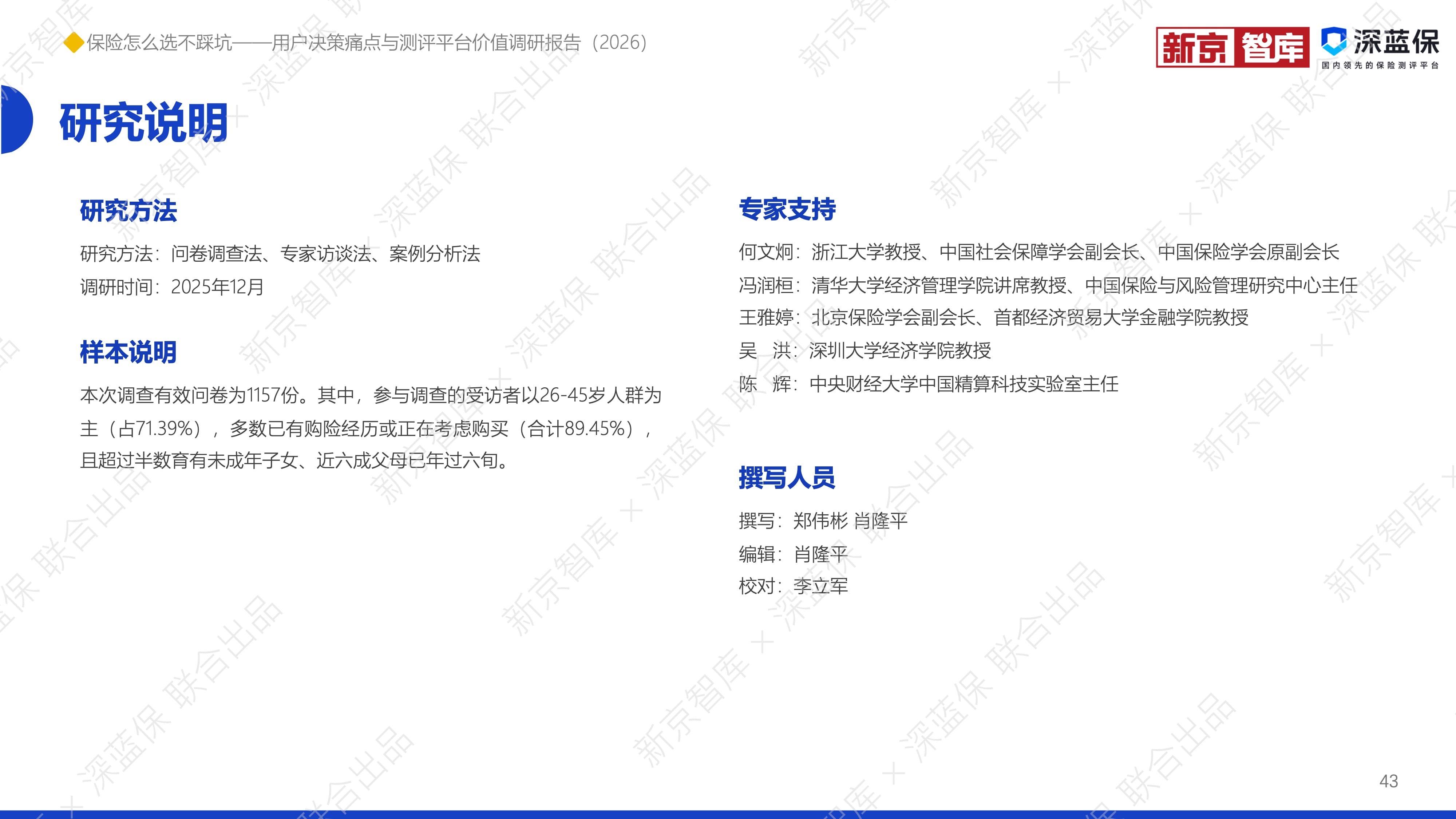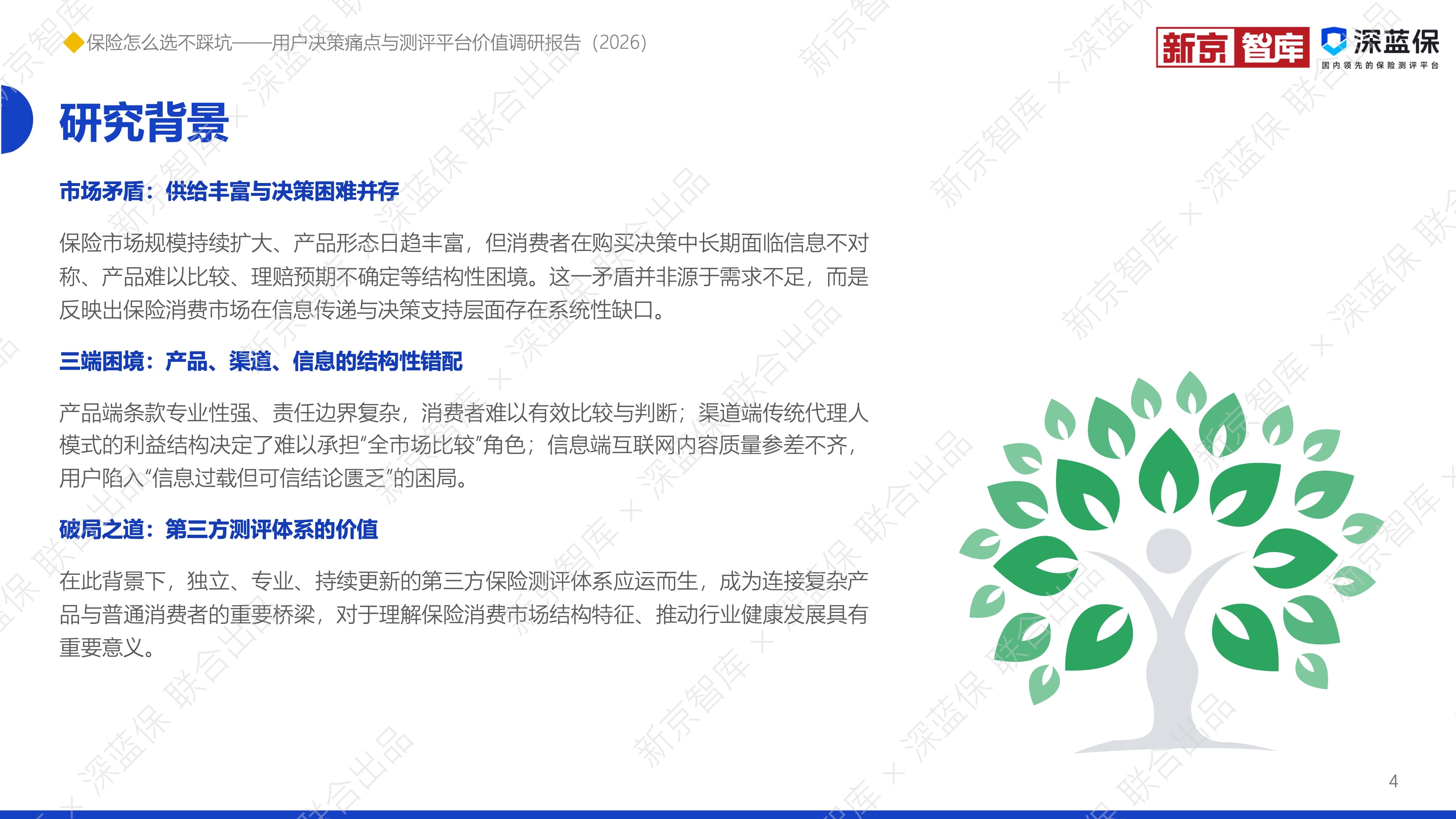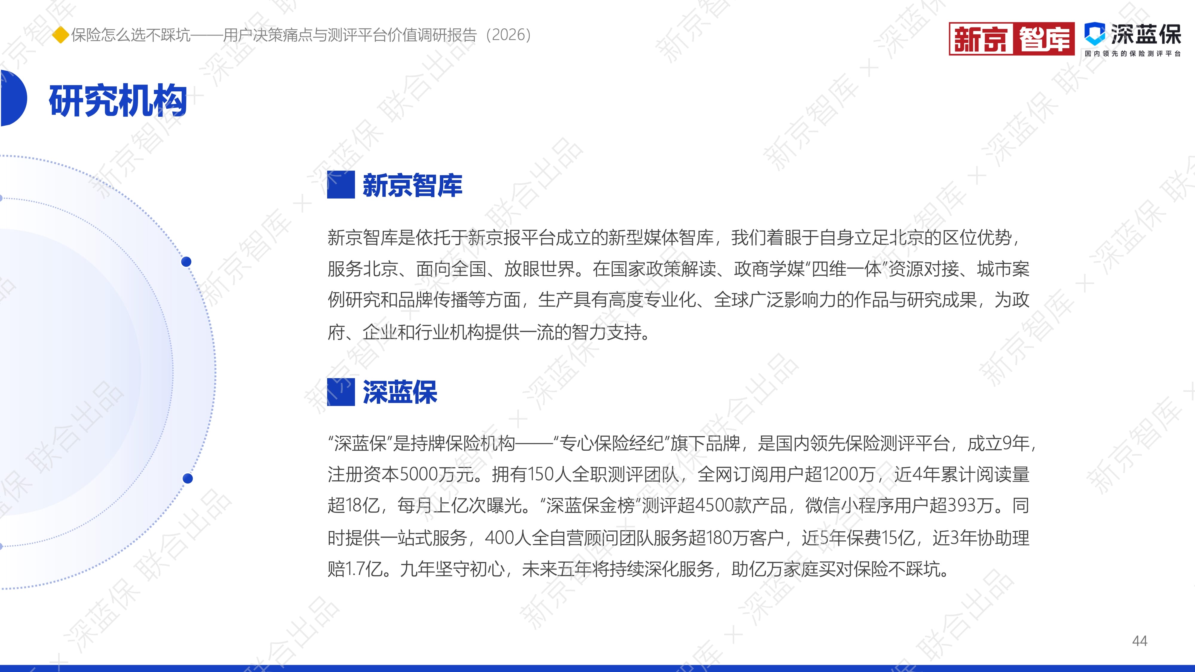 2月3日,新京报新京智库联合深蓝保发布《保险怎么选不踩坑——用户决策痛点与测评平台价值调研报告(2026)》。报告显示,近九成用户对保险持积极态度,需求真实且普遍。但理赔焦虑、条款难懂、产品难比这“三座大山”压在购险决策上,导致大量的保险购买需求被“卡”在了决策环节。与此同时,85.65%的用户表示愿意参考独立、透明的第三方测评榜单。报告主要发现如下: