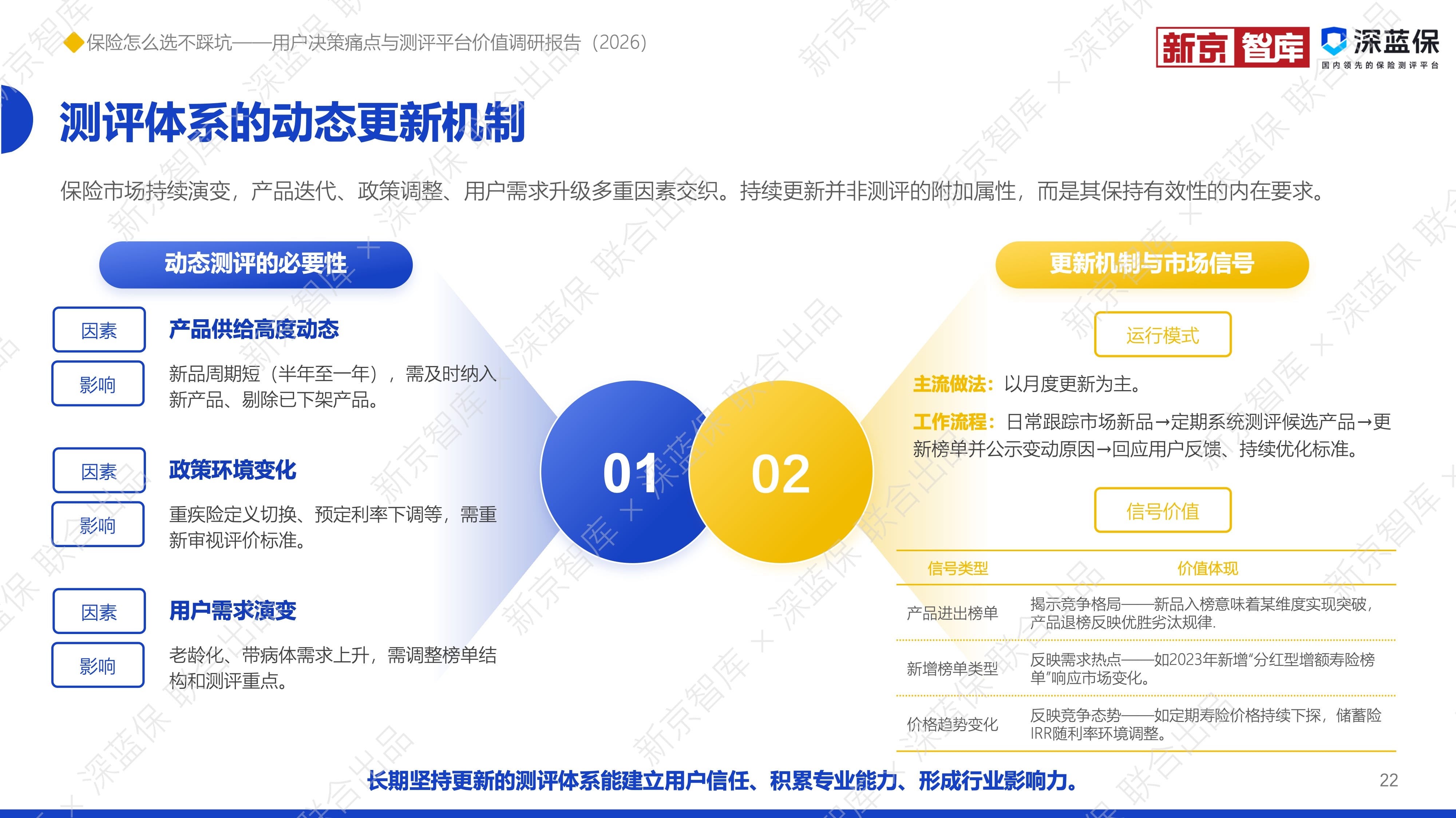 五、系统化的保险测评体系已成为连接复杂产品与普通消费者的重要基础设施。成熟的测评体系通过建立统一的比较框架、分险种与分人群的差异化测评标准,以及持续更新机制,有效降低了用户决策成本,提升了保障结果的确定性。