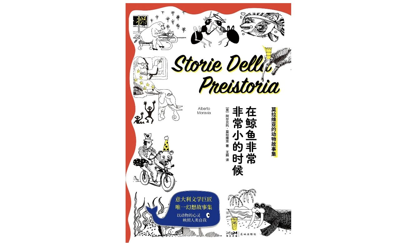 爱德华·萨义德写了一本《论晚期的风格》,分析一个艺术家在晚期,并非简单的“成熟”或“衰退”,有时风格会呈现断裂性,主题具有反思性。莫拉维亚这部晚期作品《史前故事》(Storie della Preistoria)在意大利出版于1982年,新近出版的汉语版本译为《在鲸鱼非常非常小的时候》,这本书写于他七十岁之后,在文体类型上发生了断裂,从呈现社会画卷的世情小说变成了童话,但无论如何,他的作品仍在探讨之前探讨过的一些主题。这是作家晚年的作品,也是一本让人惊异的小书,莫拉维亚的童话语言轻松愉快,一改他在批判类小说里的严肃无情。
