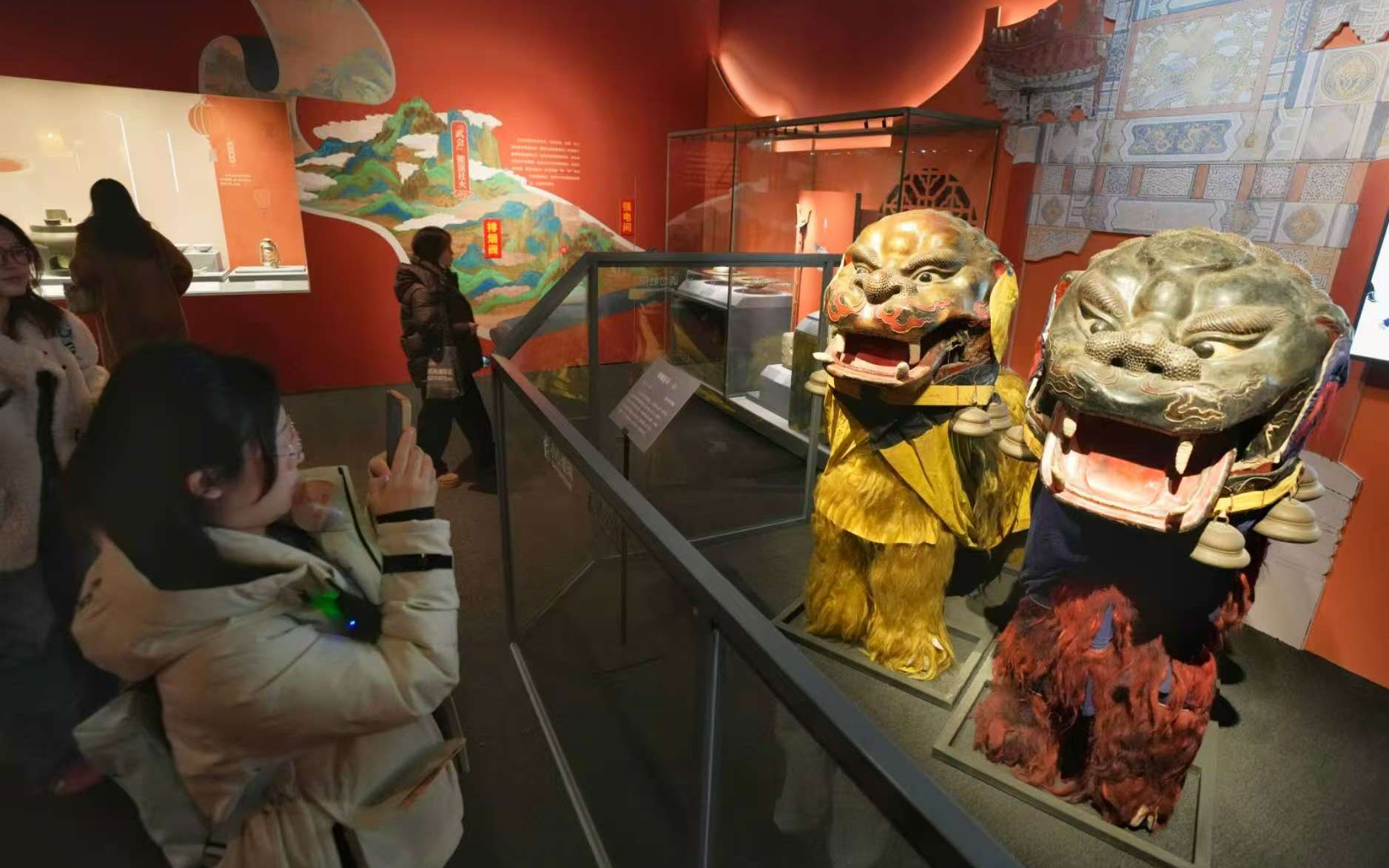 展览打破传统文物陈列模式,通过“静态文物+动态场景”的沉浸式呈现,让观众瞬间“穿越”到热闹非凡的传统庙会。