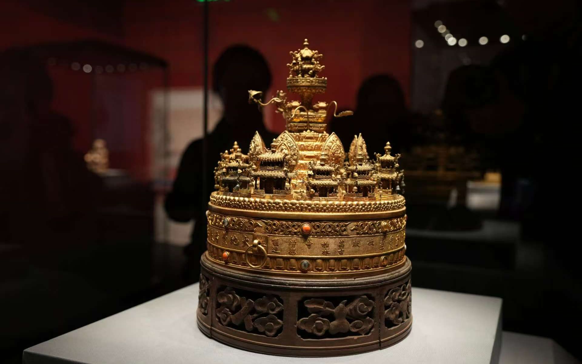 “敬神祈福”与“百货琳琅”两大单元,构建起庙会文化“精神信仰+物质生活”的双重维度,解码传统民俗的精神内核。在“敬神祈福”单元,明永乐铜鎏金金刚持像工艺精湛,尽显皇家气派;清代铜鎏金须弥山坛城镶嵌各色宝石,承载着藏传佛教的宇宙观;福、禄、寿三吉神造像与八仙寿字图轴,则将民众对长寿、富贵、吉祥的朴素愿望具象化,传递出温暖的人文情怀。