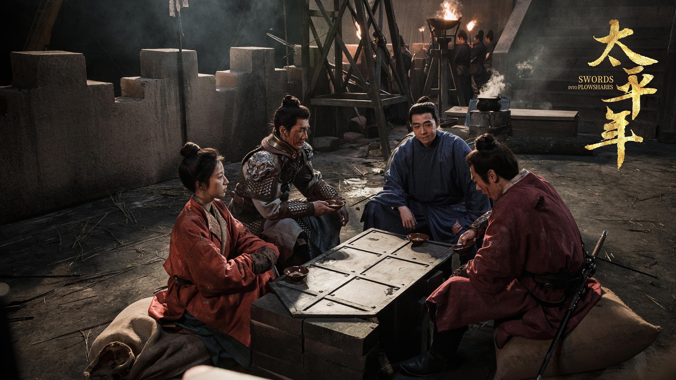 钱弘俶、孙太真、赵匡胤、郭荣这四个年轻人在血战后的汴梁城墙上许下愿望:“希望有一天我们可以在太平年下共饮一杯热酒。”