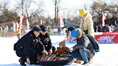 2026年1月18日,奥森公园冰场,工友们跪在地上测量冰面的厚度。