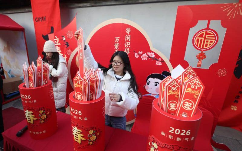 市民参与抽新年签活动。新京报记者 王贵彬 摄