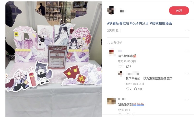 同时快看联合线下门店推出多重IP周边运营动作,配合门店满赠、主题快闪等线下活动,购买行为已超越简单的商品交易,进化为一场沉浸式的情感奔赴和圈层认同。