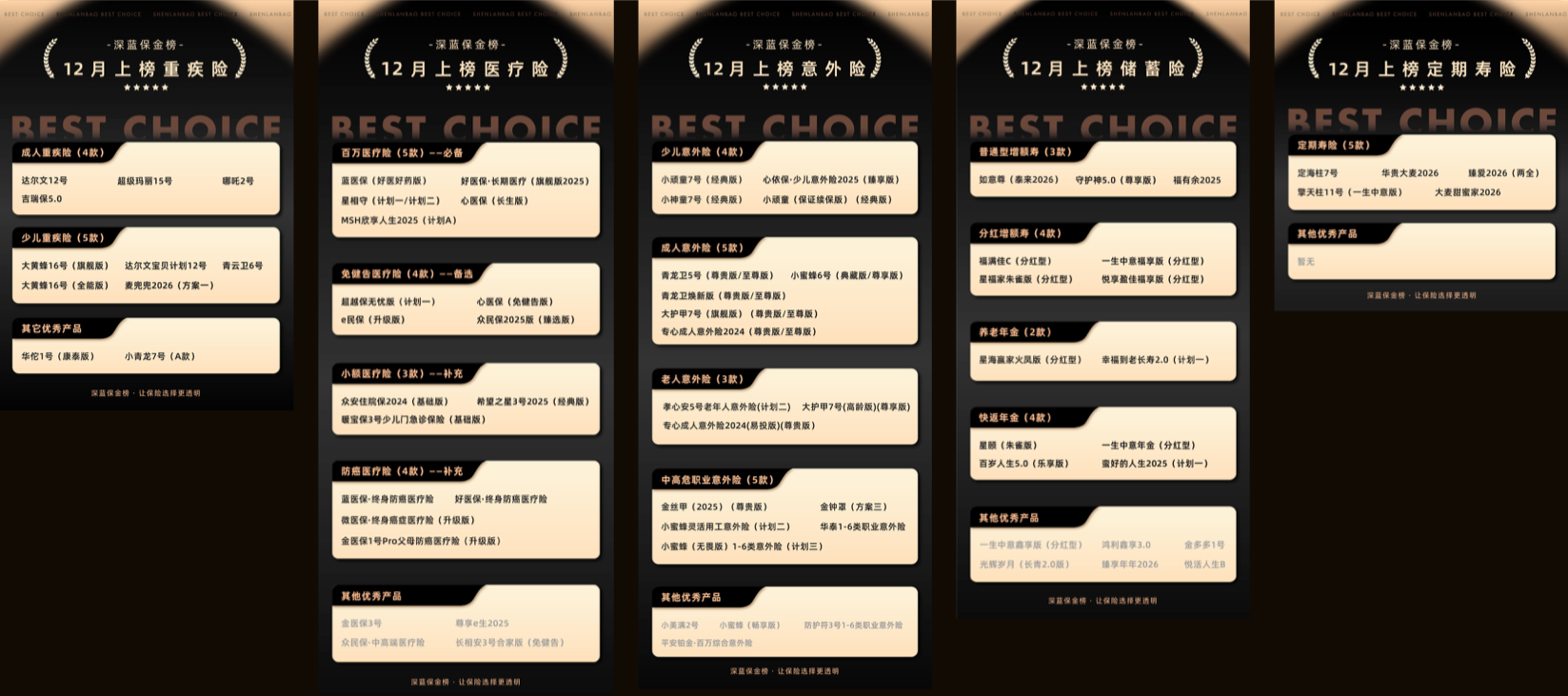 以深蓝保金榜为例,它不是一次性“推荐几款”,而是把长期运营当作制度。自2019年上线以来持续运行超过74个月(截至2026年1月),累计测评产品超过4550款,覆盖5大险种、15个细分榜单类型;并通过公众号、小程序及官方网站等平台同步发布,小程序还支持按险种、人群与保障需求筛选对比,让“看榜单”更像“用工具做选择”。支撑这种长期更新的,是一套可复核的测评工具与标准化拆解体系,例如FPM疾病定义库、深蓝Model、保险字典等,把条款拆解成可比数据,并在此基础上设置192项细则逐项对照。