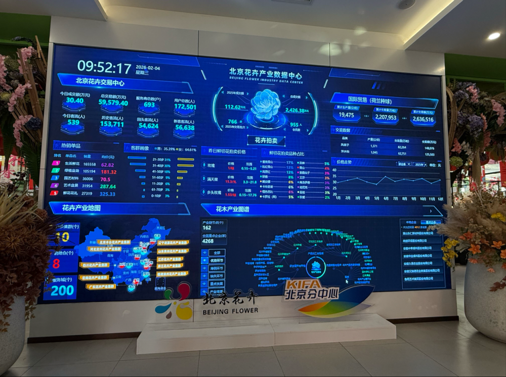据悉,丰台区有着800余年花卉栽培历史,素有“花卉之乡”的美誉,如今已发展成为北方现代花卉产业集聚区。北京花卉交易中心在此基础上不断升级,现已成为集精品园艺、鲜花销售、供应链服务于一体的现代花卉综合体,内设鲜花拍卖中心、花卉数据中心、休闲园艺体验区,更推出了北京首个花卉主题夜市“花街夜市”,是国家级服务业标准化试点,成为兼具商业活力与休闲属性的区域地标。