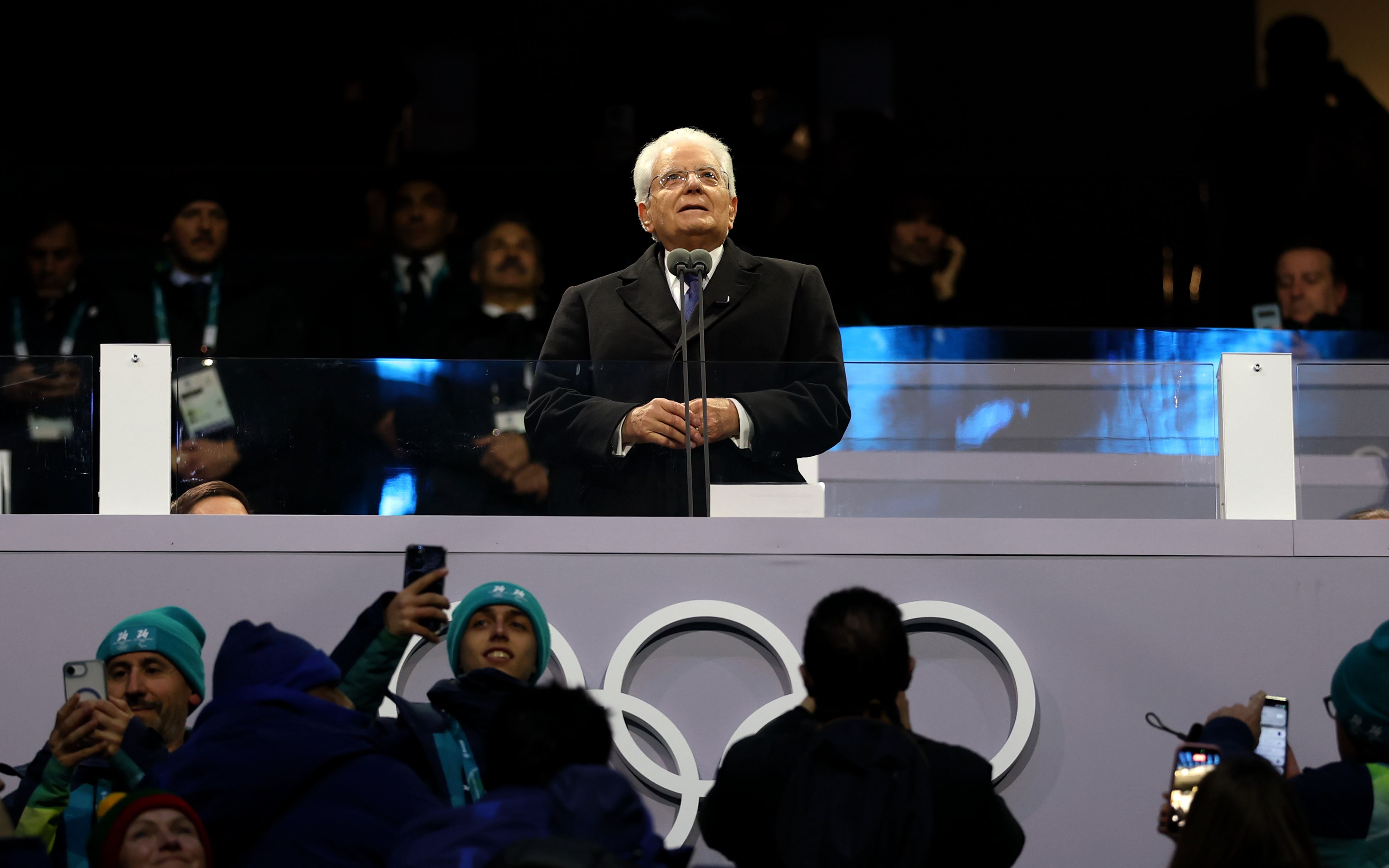 2月6日,意大利总统马塔雷拉宣布本届冬奥会开幕。新华社记者 李明 摄