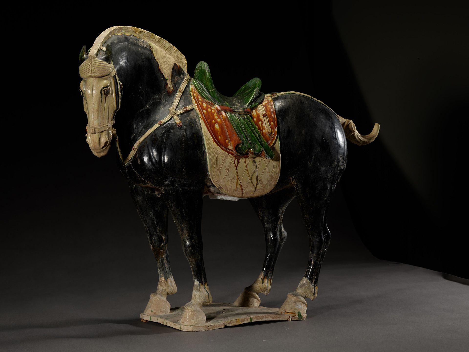 唐代三彩黑釉陶马,正在国博展出。图源:中国国家博物馆