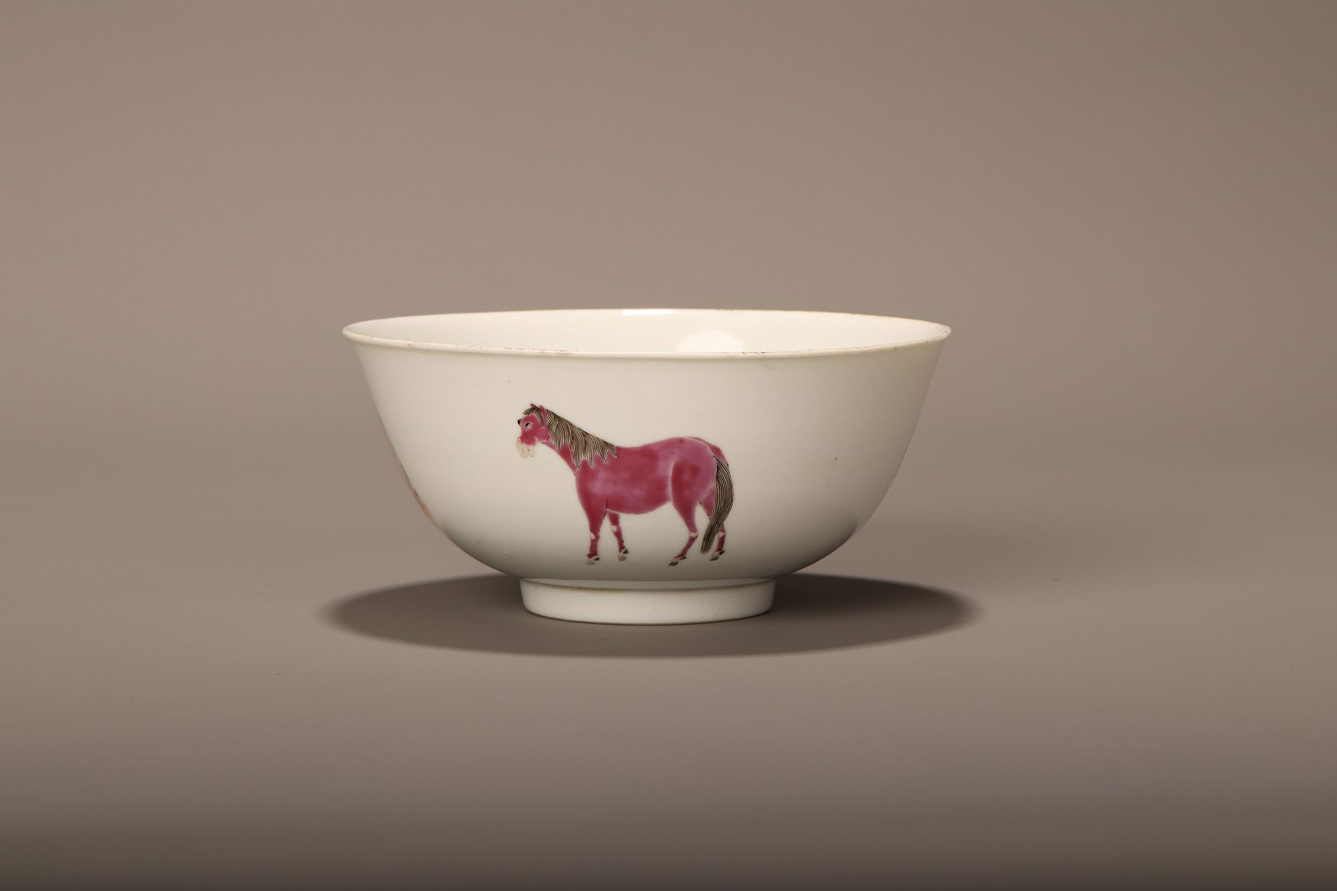 清代粉彩四马图碗,正在国博展出。图源:中国国家博物馆
