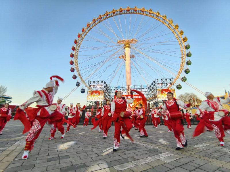 安塞腰鼓开启石景山游乐园2026“迎春庙会·新春灯火游园会”