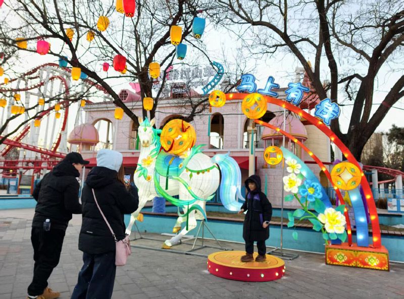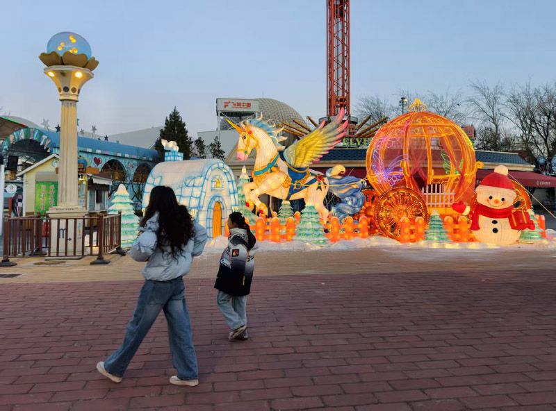 2月7日,石景山游乐园,各类灯组已经搭建完毕。“迎春庙会”开放时间为2月17日至2月23日9:00-16:00;“新春灯火游园会”则以“日游园、夜赏灯”为主线,营造昼夜皆宜的多元游玩体验。3月3日元宵节当晚,营业时间调整为14:00-24:00,让游客尽享年味。