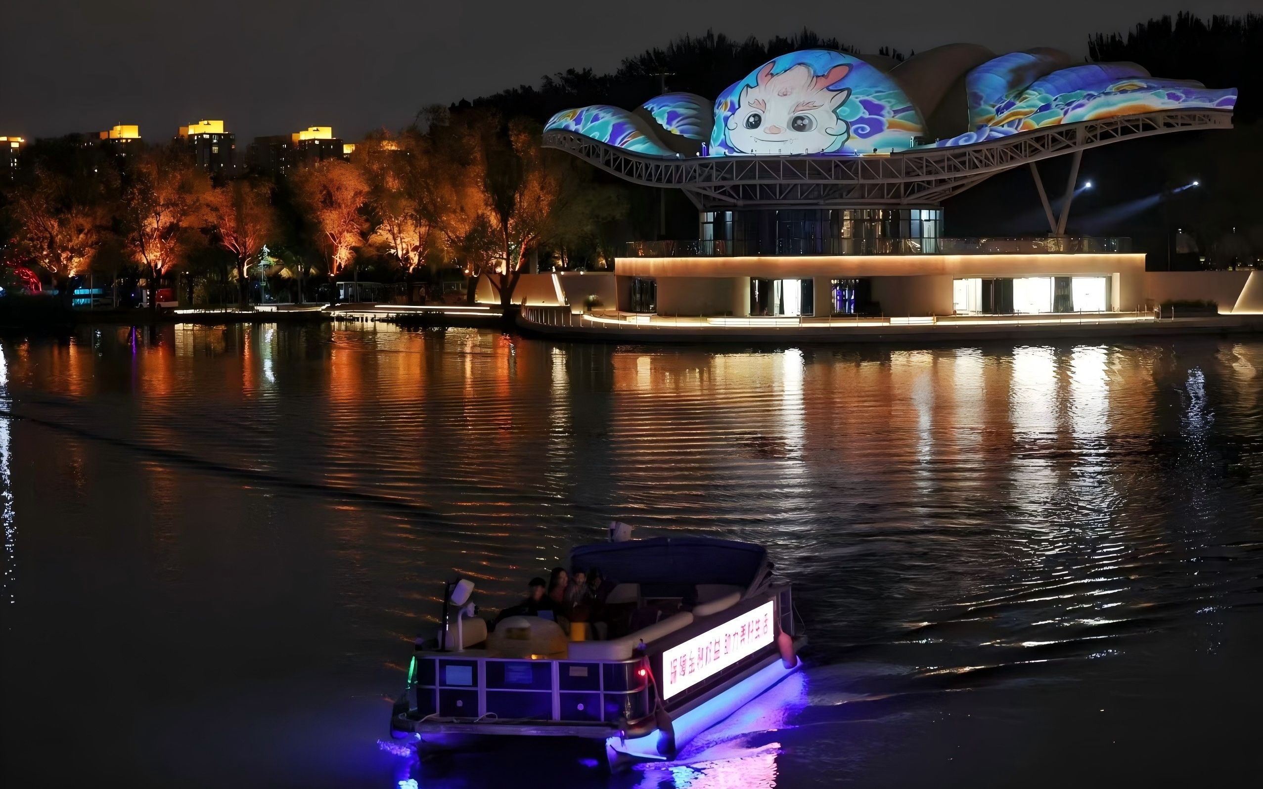 位于朝阳的亮马河,虽然早已经没有了洗马、晾晒马具的人群,但在经过多年修葺与治理之后,已经建成亮马河国际风情水岸,并获评首批国家级夜间文化和旅游消费集聚区。乘一艘游船顺流而下,从古代的亮马河河岸,一路声光电相伴,水上漂浮的“立体魔方”、光影交错的“孤独星球”、空中起舞的立体表现,仿佛从历史中走向未来。