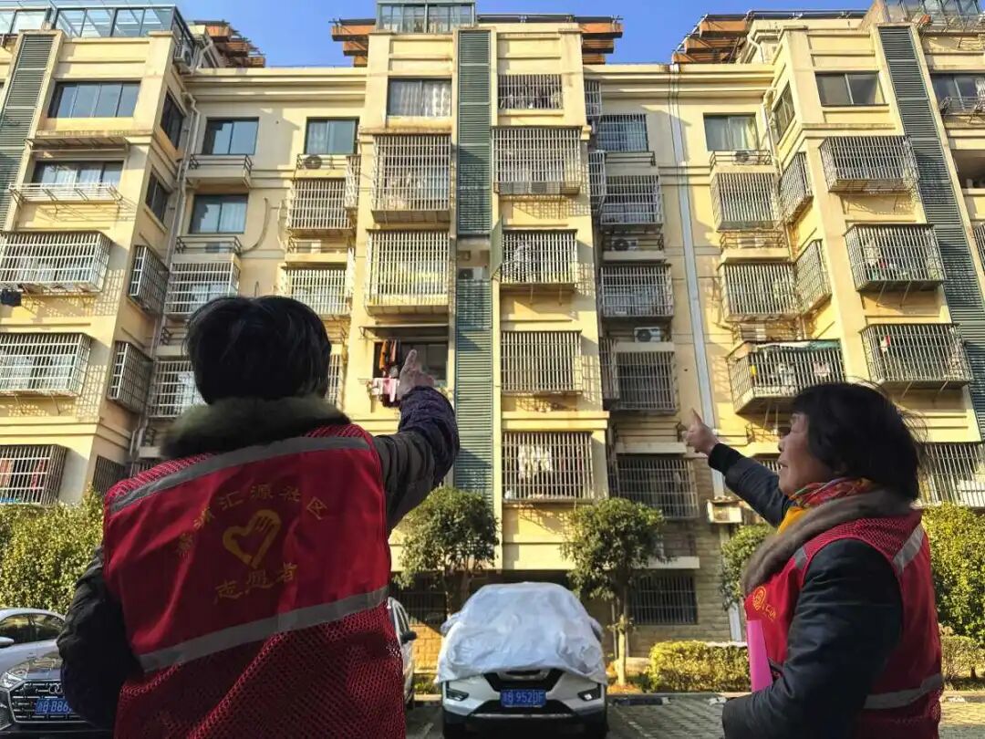 ▲社区志愿者查看独居老人家的窗帘是否拉开。图/镇灵通客户端