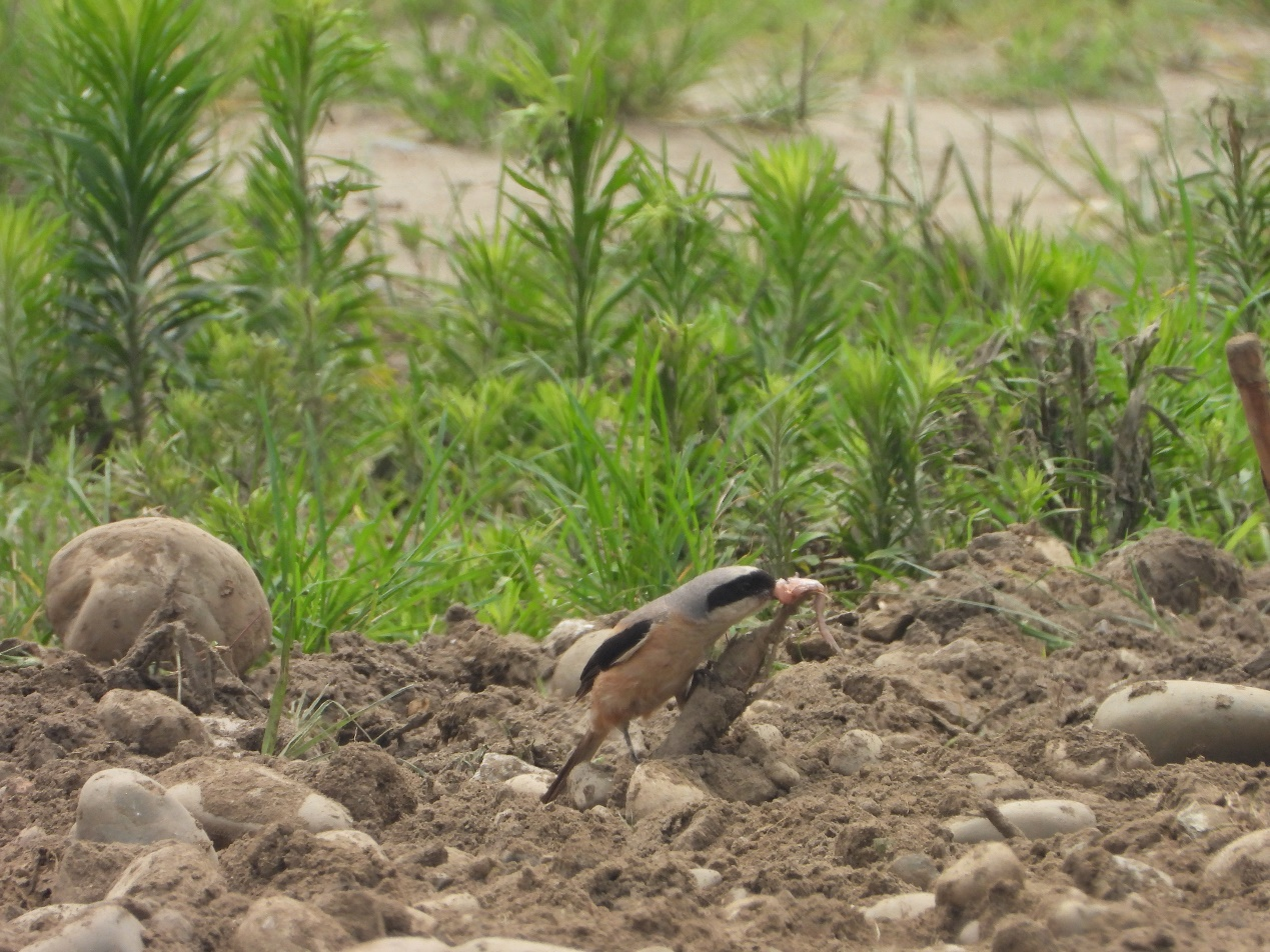 正在“撸串儿”的棕背伯劳。何雨珈 摄