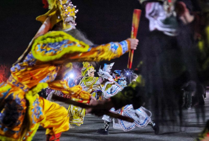游园会引入风靡全国的潮汕英歌舞表演。被誉为“中华战舞”的英歌舞与新疆舞、舞龙舞狮、高跷等北方民俗表演同台献艺。