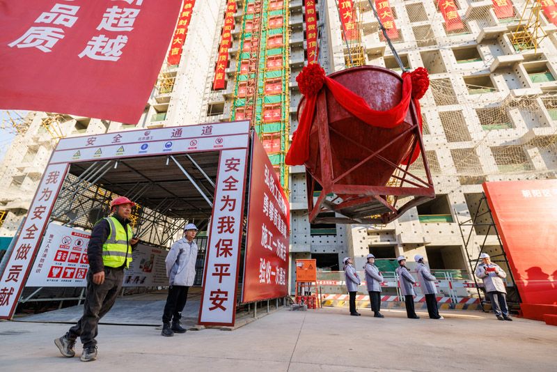最后一斗混凝土完成浇筑。施工期间,平房乡安置房西区项目积极落实绿色施工理念,成立以项目经理为首的扬尘治理组织机构,通过方案规范行动、硬措施物理降尘、强管理闭环锁尘、监测数据监控管理等举措,确保扬尘指标始终控制在规定范围内,顺利获评北京市扬尘治理“绿牌”工地称号。