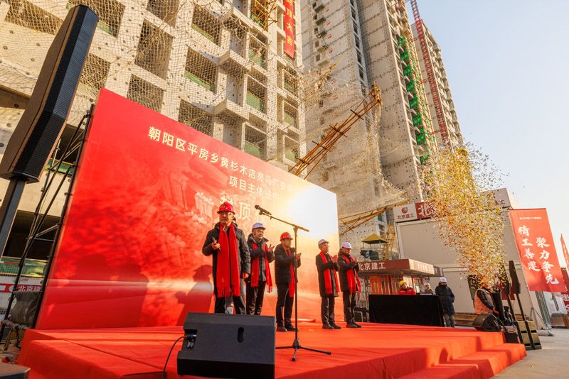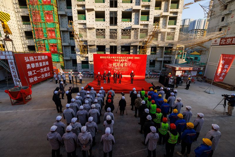 2月9日,朝阳区平房乡2150套回迁房提前封顶,北京建工六建的朝阳区平房乡黄杉木店亮马厂安置房(西区)项目举行全面封顶仪式。
