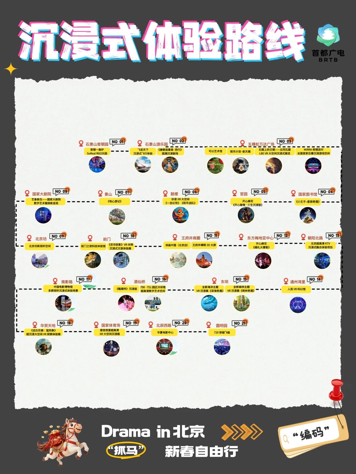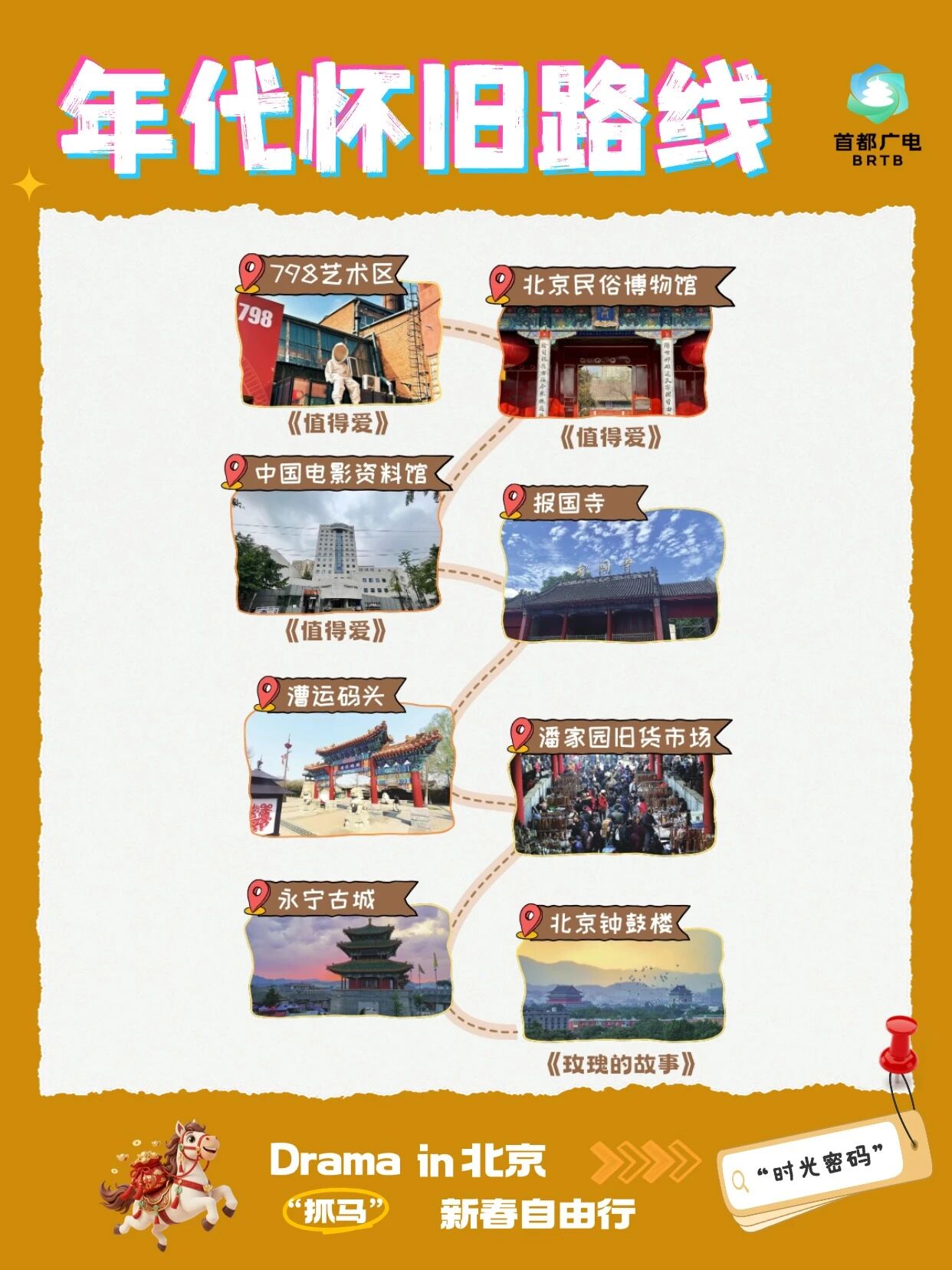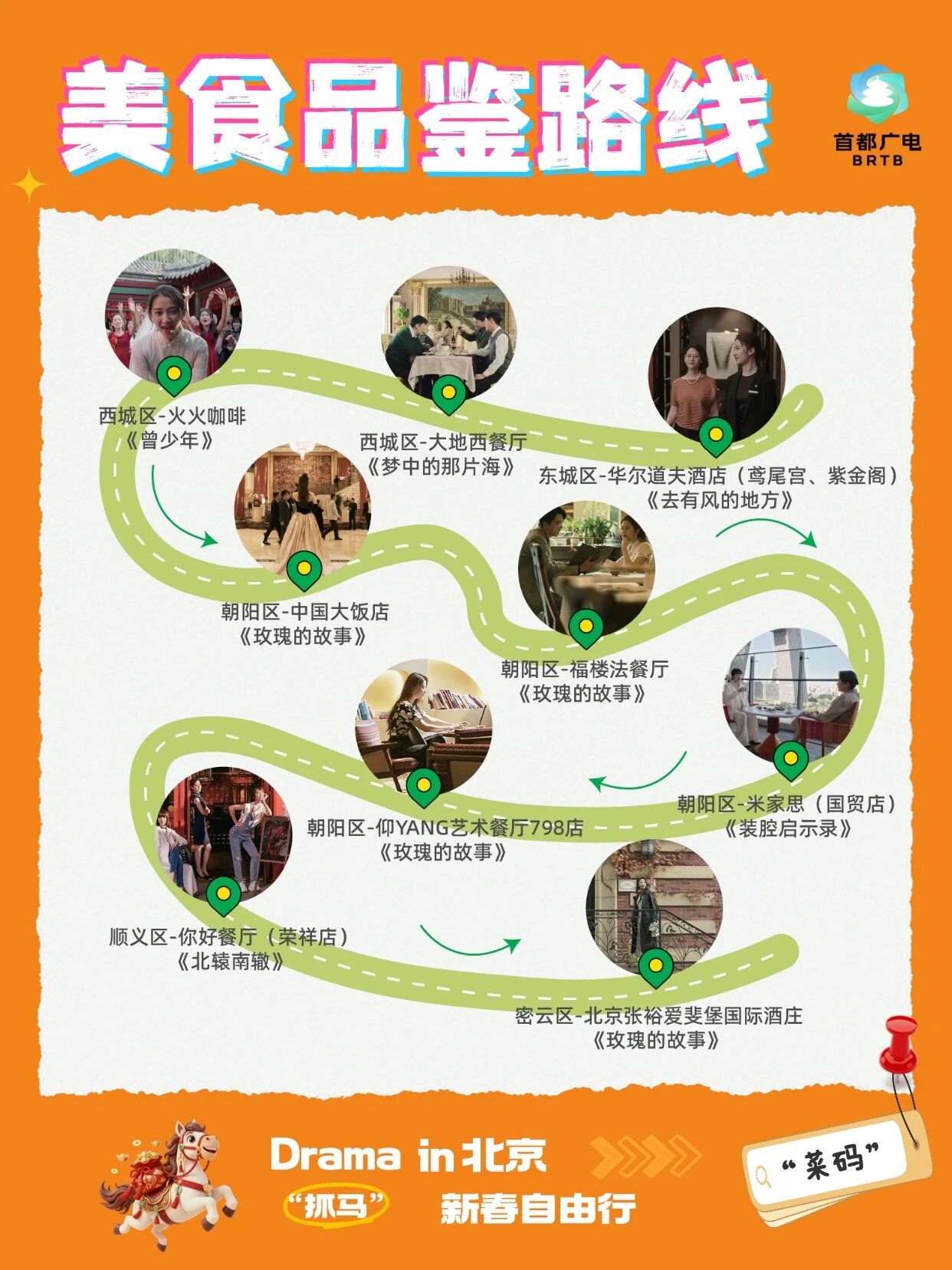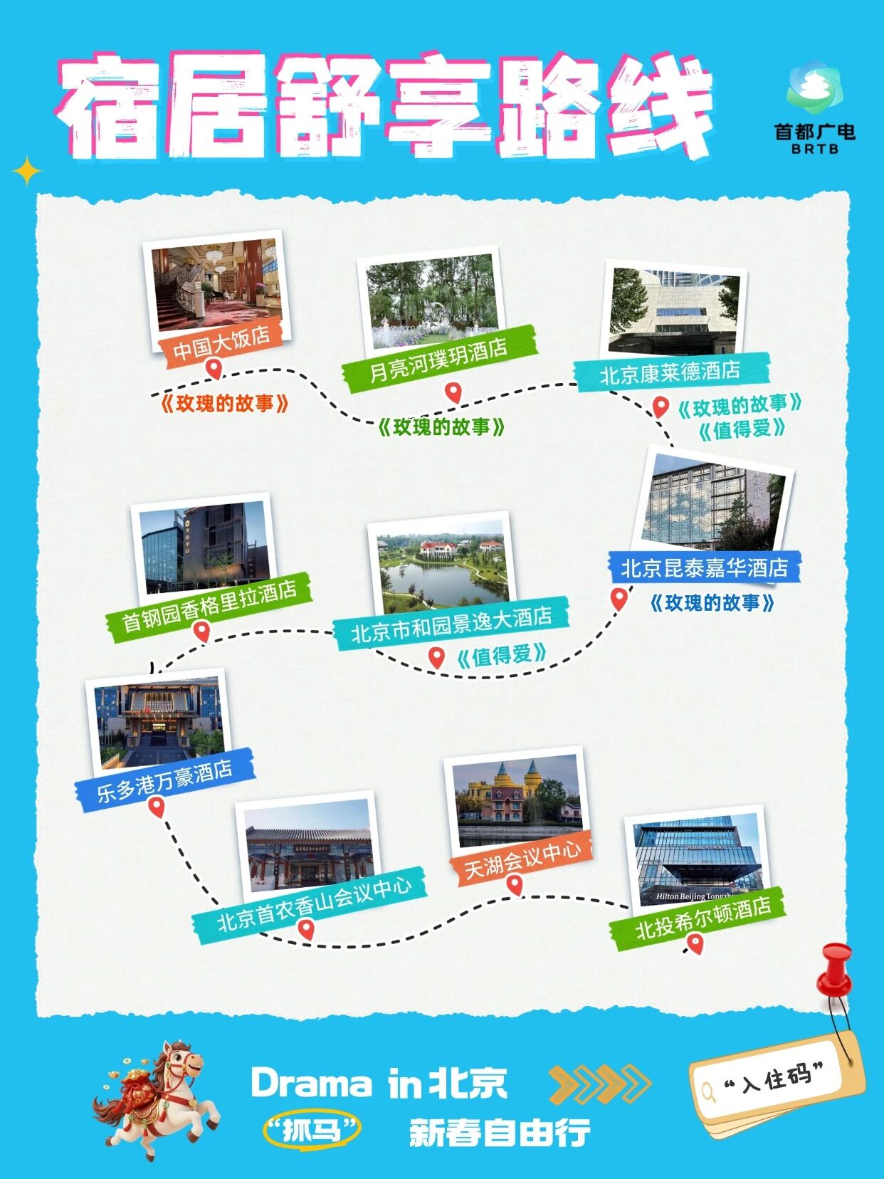 面对北京市民以及来京过年游客,市广电局策划推出了12条“跟着北京大视听游北京”特色影视打卡路线。以“Drama in北京,新春自由行”为主题,巧妙借用“马”的谐音串联起12种各具特色的京味玩法,引导市民游客沿着《玫瑰的故事》等热门影视剧的光影足迹,深度探索北京。路线融合了古都风韵、现代潮流、京味美食与自然风光,同期将上线“我们‘视’朋友呀!”一站式线上服务平台,提供路线查询、剧情介绍与打卡互动等全流程服务。