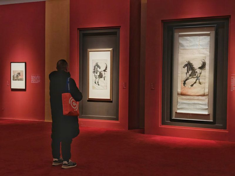 2月9日,中国美术馆新春大展正式开幕。本次大展精心策划五大主题展览:“奔腾启新——致敬老艺术家美术精品展”“骏驰云章——中国美术中的马”“跃马春风——中国美术馆楹联书法作品展”“神采在兹——中国民间美术中的祈福形象”“瑞器呈华——中国美术馆工艺美术精品展”。各展览精彩纷呈、交相辉映,既致敬古代与近现代美术经典,又礼赞当代艺术创新,更以马年特有的昂扬之气,传递对新时代的美好祝福。图为嘉宾观看“奔腾启新——致敬老艺术家美术精品展”,展览展出全国129位艺术家的约250件美术作品。