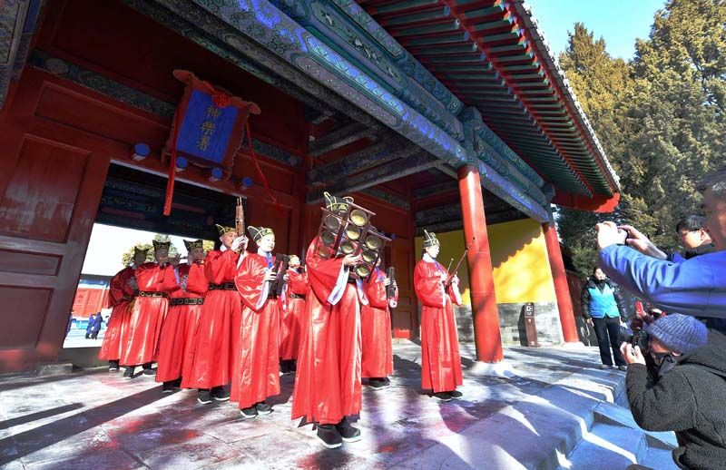 2月9日,天坛公园神乐署,雅乐团现场演奏。“中和韶乐”作为传承自西周的雅乐,于明清时期发展为重大国事活动的礼仪性乐舞,于2021年入选第五批国家级非物质文化遗产代表性项目名录。