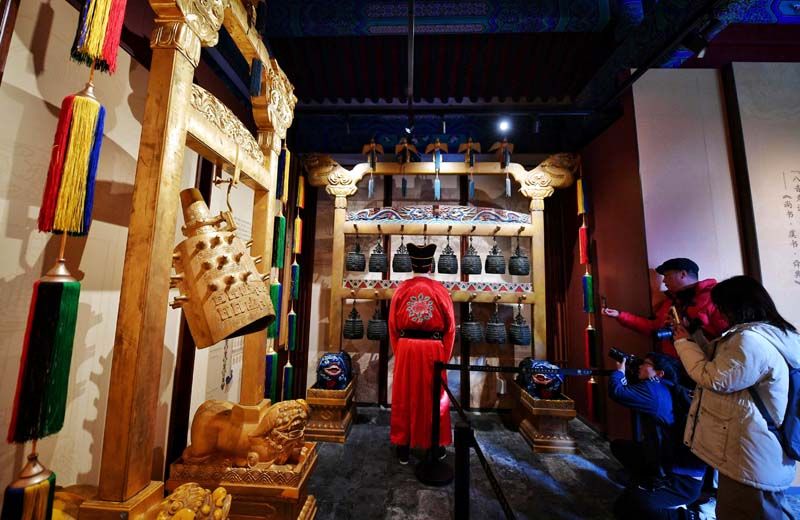 2月9日,天坛公园神乐署,天坛神乐署中和韶乐展。1500平方米的展览空间串联起“华夏正声”“八音克谐”“八佾(yì)起舞”“合乐节奏”四大板块,让沉睡的礼乐文化“活”了起来。