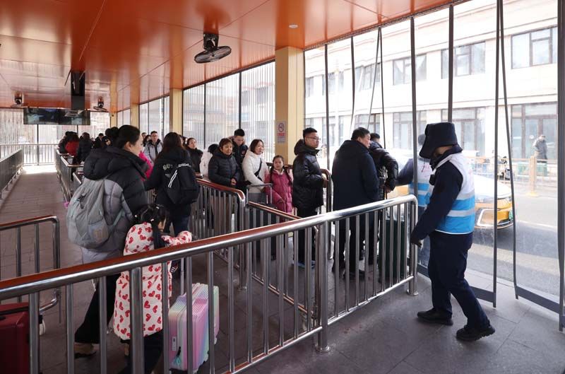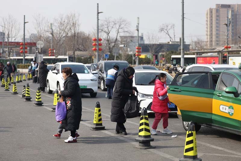 2月9日,北京站落客区内,送站车辆停车落客。