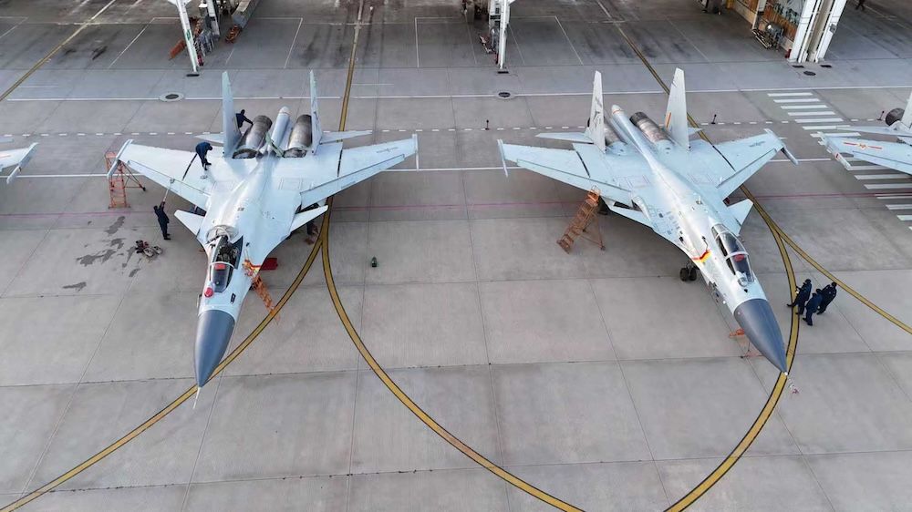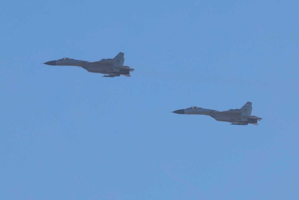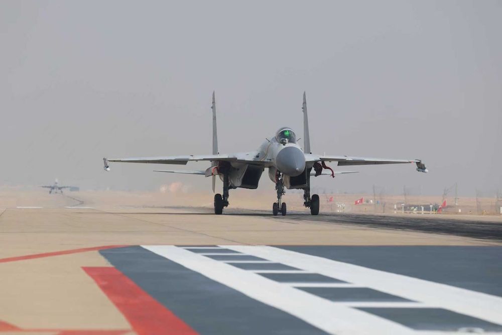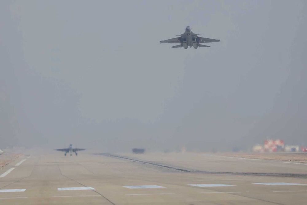 “计时起飞!”随着塔台指挥员一声令下,海军某飞行训练基地飞行教官与学员分别驾驶歼-15战机接续起飞,一场“二对二”空战对抗训练即将拉开帷幕。
