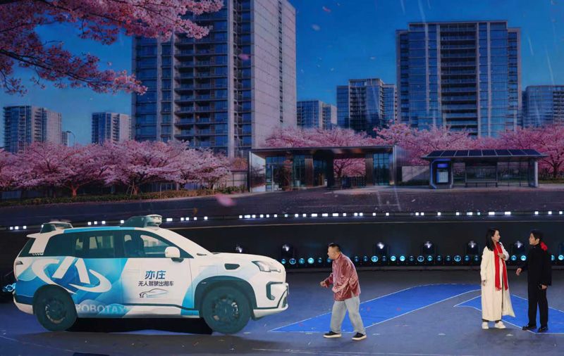 小品《“人”与“无人”》以Robotaxi (自动驾驶出租车) 站点为背景,讲述“算法为人心让路”的温情故事。