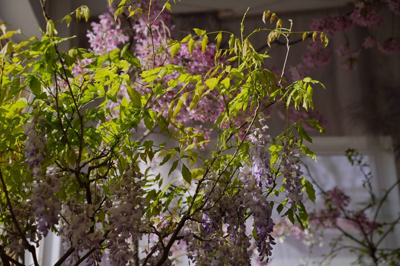 2月10日,玉渊潭公园小樱驿站,通过促培技术提前绽放的紫藤。玉渊潭公园高级工程师赵爽介绍,这是公园首次成功实现盆栽紫藤的促花培育,使原本暮春开放的紫藤提前两月绽放,营造出“樱藤同赏”的难得景致。