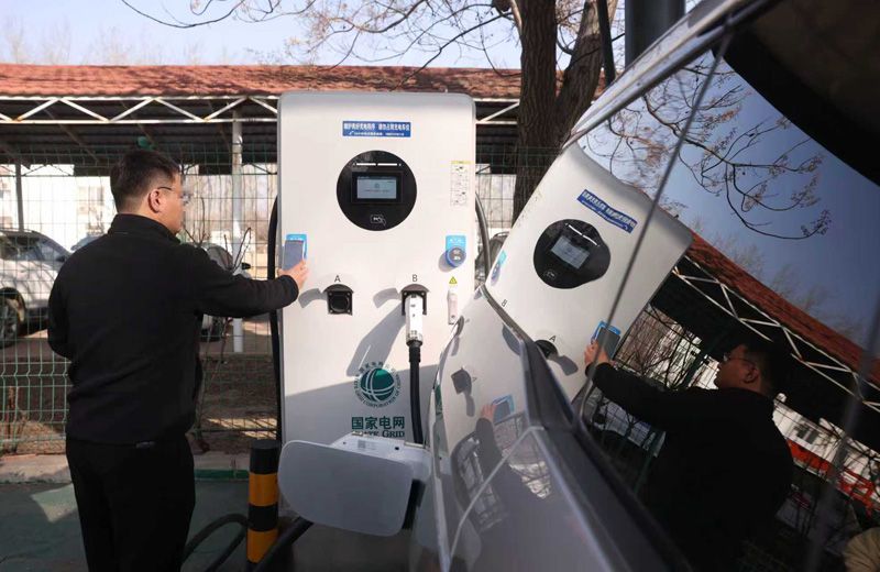 2月10日,通州区田家府服务区电动车充电站,车主用新安装的超充充电桩为车辆充电,并使用“碰一碰”功能支付充电费。