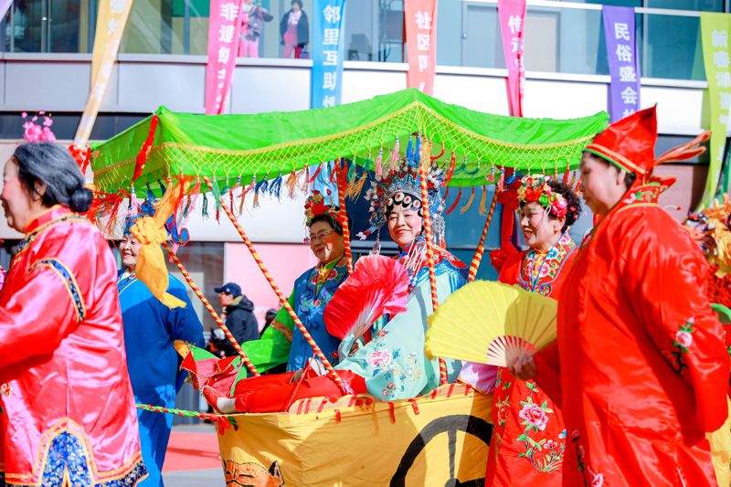 小车会表演。本次新春嘉年华共有600余人参与演出,吸引1万余名地区群众参与互动。