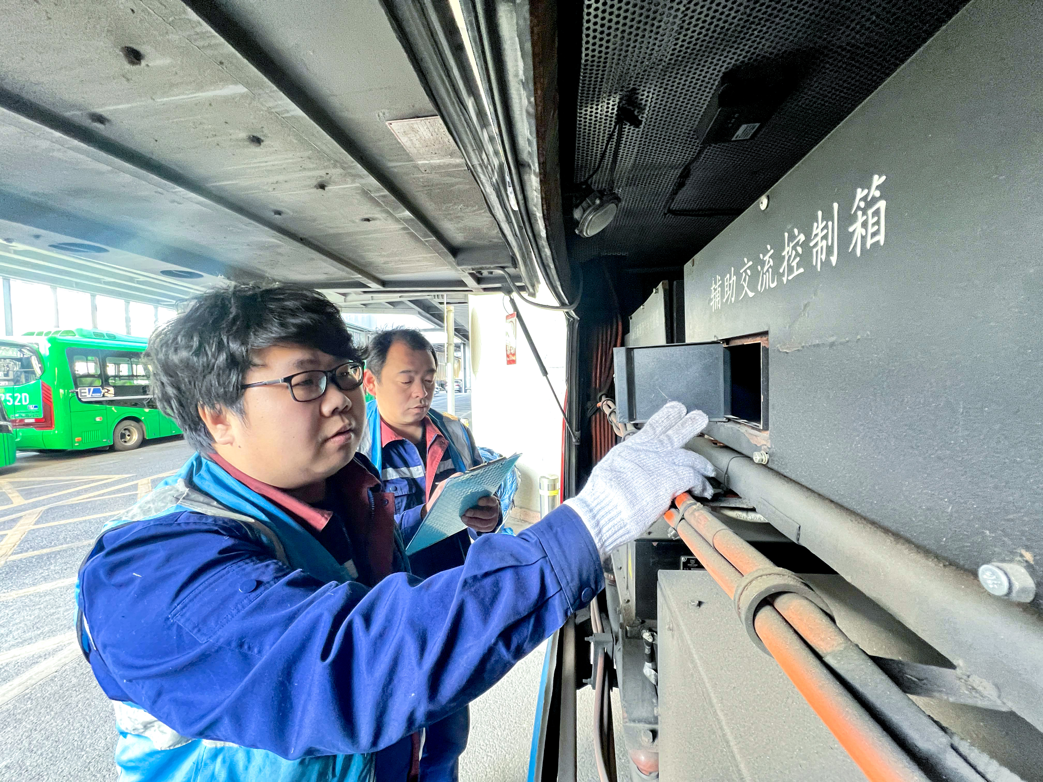 北京公交集团保修分公司工作人员检修公交车辆。受访者供图