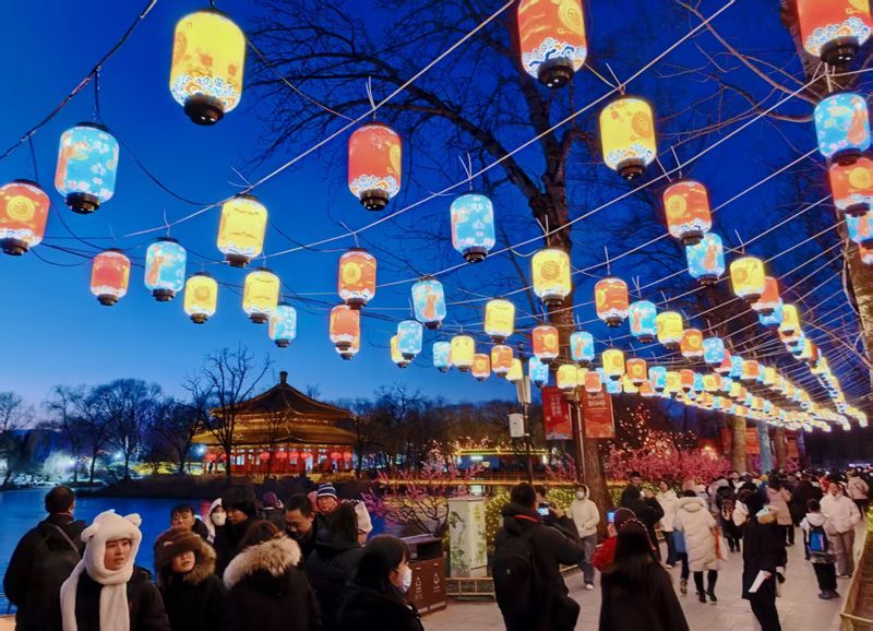 众多游客打卡新春灯会。
