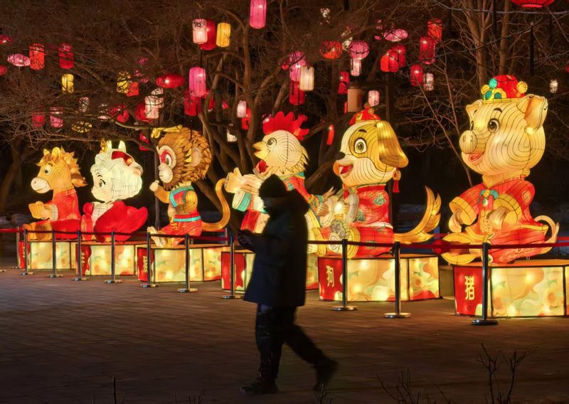 游客走过十二生肖灯组。多个特色大型灯组分布于五大主题板块,构建起“一步一景、步移景异”的画卷。