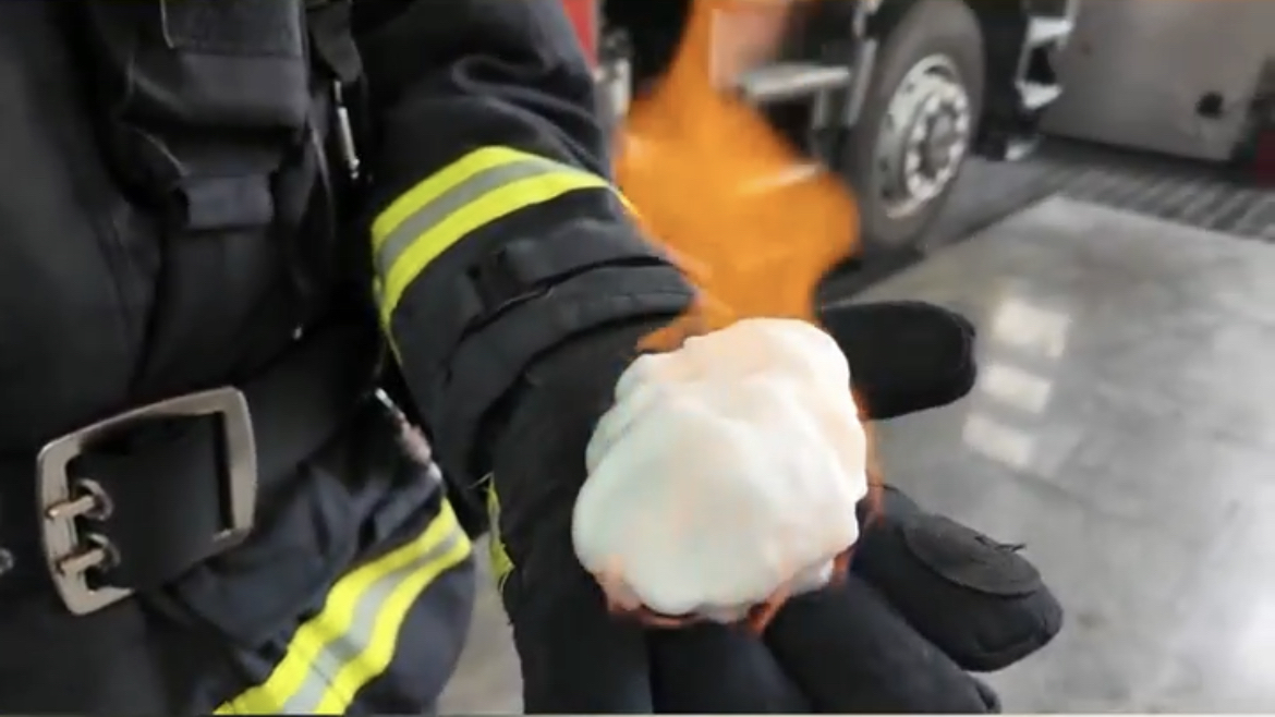 白色泡沫遇火后很快燃烧。门头沟消防供图